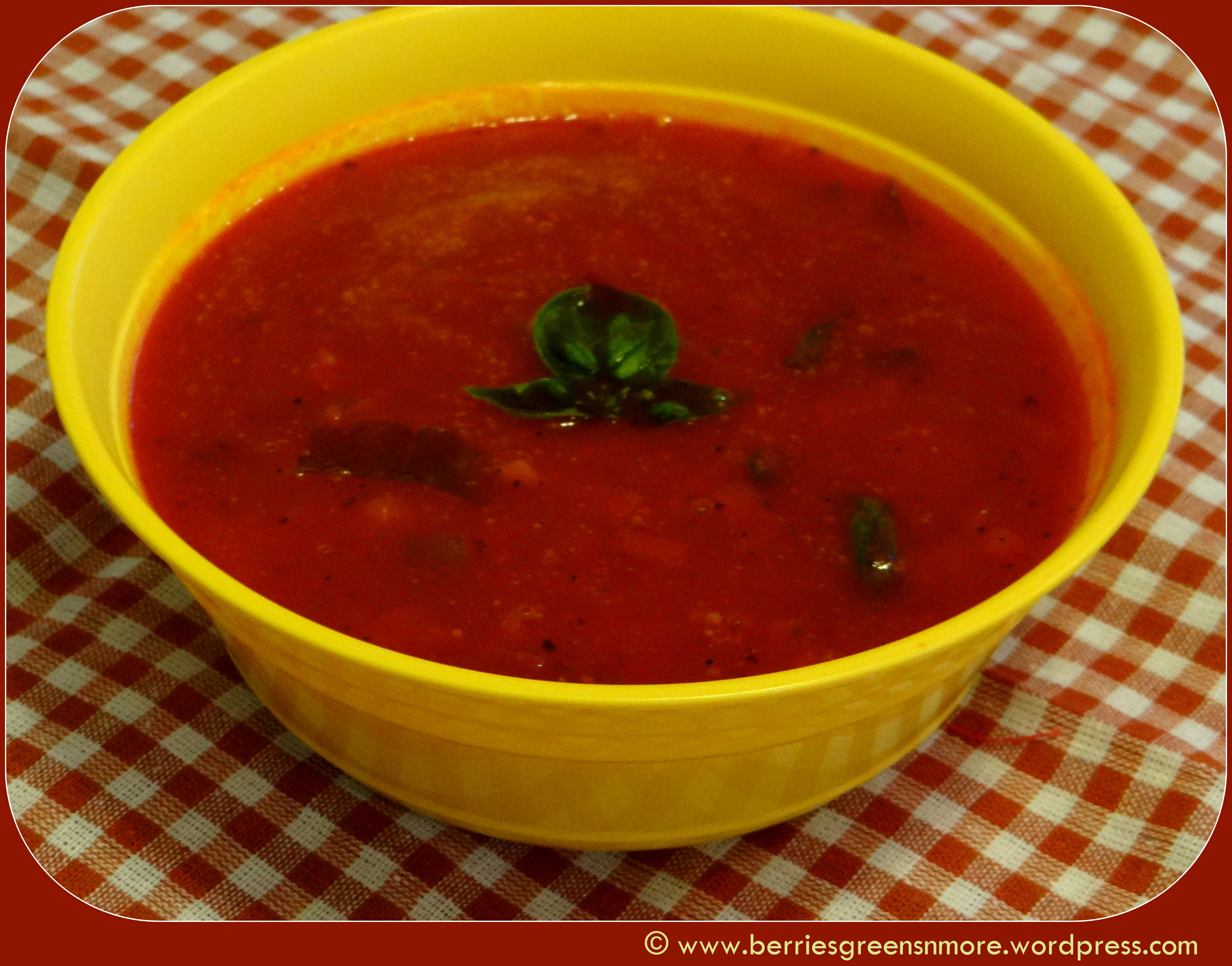 6. When you are ready to serve the soup, garnish with basil leaves and serve the soup along with a toasted garlic bread. Serve Hot.